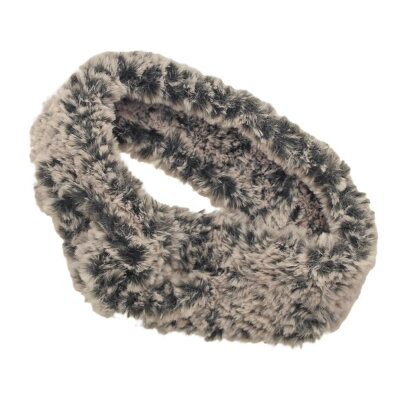 ふわふわのファーの毛糸をひとつひとつ手編みしたヘアバンド。