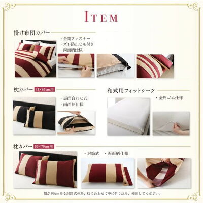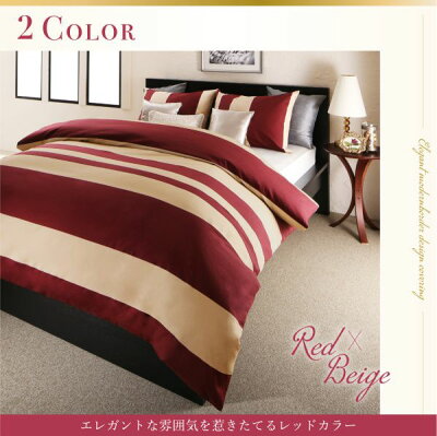 商 品 エレガントモダンボーダーデザイン布団カバーシリーズ布団カバー3点セット サイズ セミダブル タイプ 枕43×63cm用敷き布団用(敷き布団カバー入り) カラー レッド×ベージュ ブラック×ベージュ ※フィットシーツは無地アイボリーです。