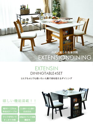 ダイニングテーブルセット 4人掛け 90〜120cm ダイニングセット ダイニング4点セット 木製 伸縮式 レトロ モダン 収納付き ベンチ付き コンパクト バタフライ 食卓セット 2人掛け シンプル 北欧 家具通販 大川市 伸長